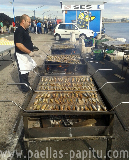 Para realizar las sardinadas elegimos las mejores sardinas del mercado, por frescura y tamaño, y las preparamos en estas planchas de acero inoxidable a fuego de leña; las acabamos con ajo y perejil y acostumbramos a acompañarlas con mejillones al vapor. Ya veis el resultado..., unas sardinas frescas cocinadas al momento.